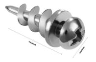 Drywall Screws: 3/4“ Double headed bear claw screw. Very short distance between heads. Don’t drill a pilot hole or add an anchor. The anchor is built in.
