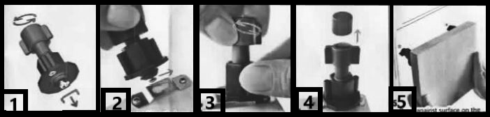 If mounting on wood, Press the tip of the center punch against the red dot until the spring is triggered. This will leave a dent. Put a screw in each dent. Leave the head of the screw sticking out about 1/8th of an inch so the keyhole plate will be able to grab it. Screw heads should be completely straight, not at an angle.